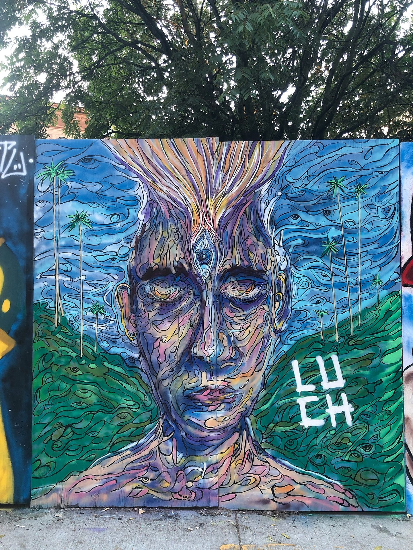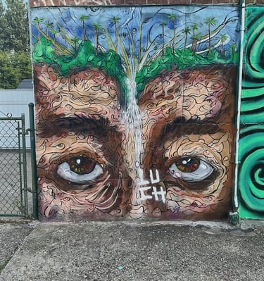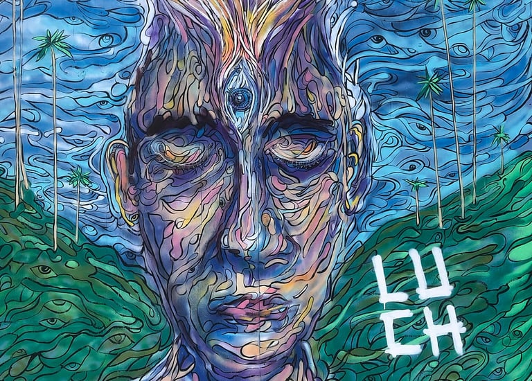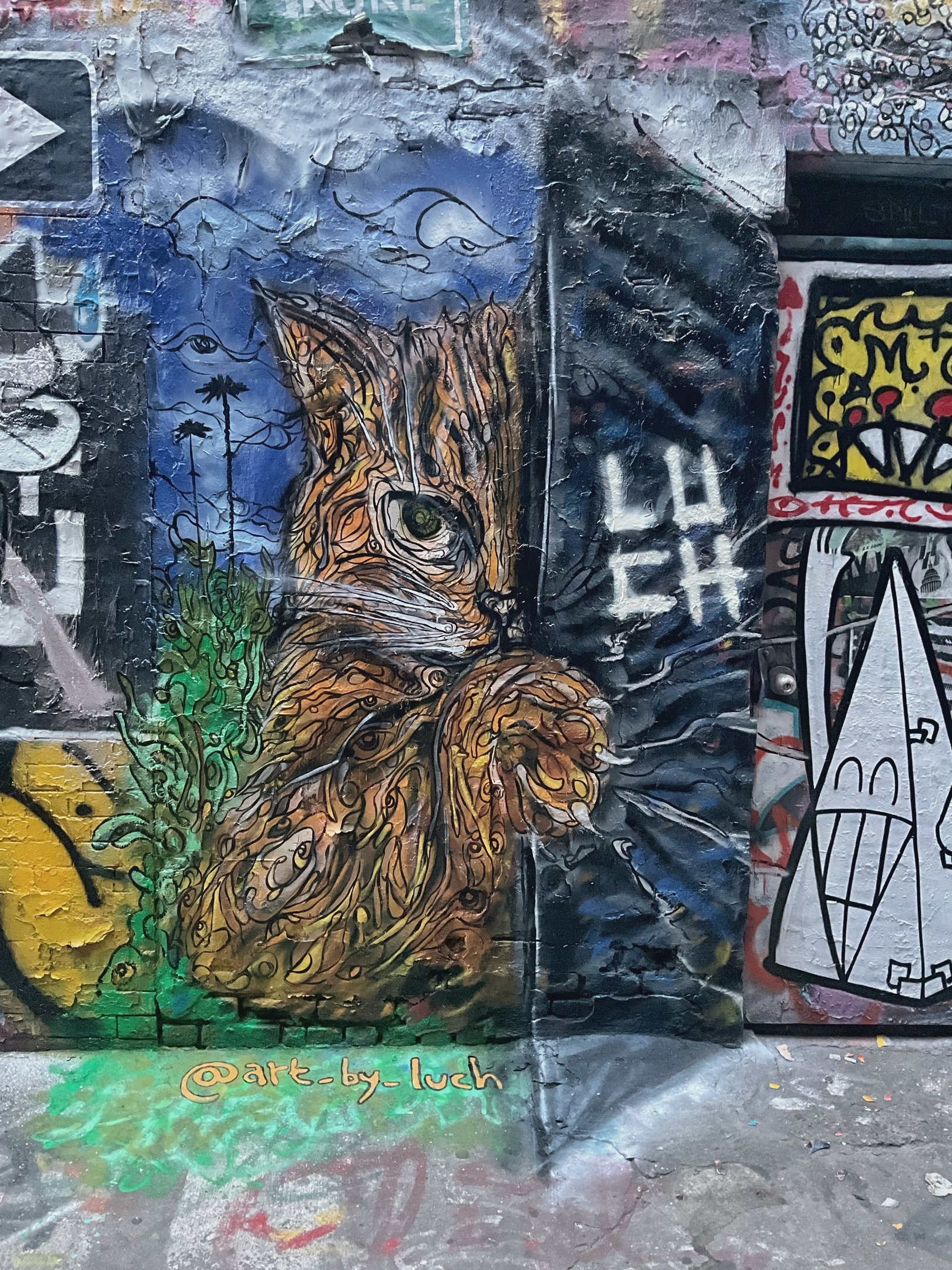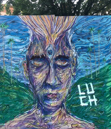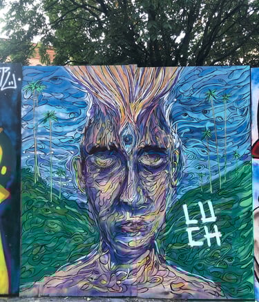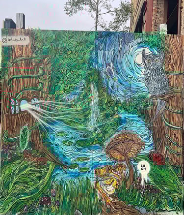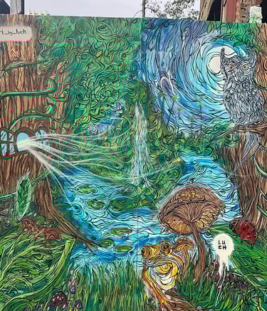Explore vibrant murals showcasing the artist's unique creative vision.