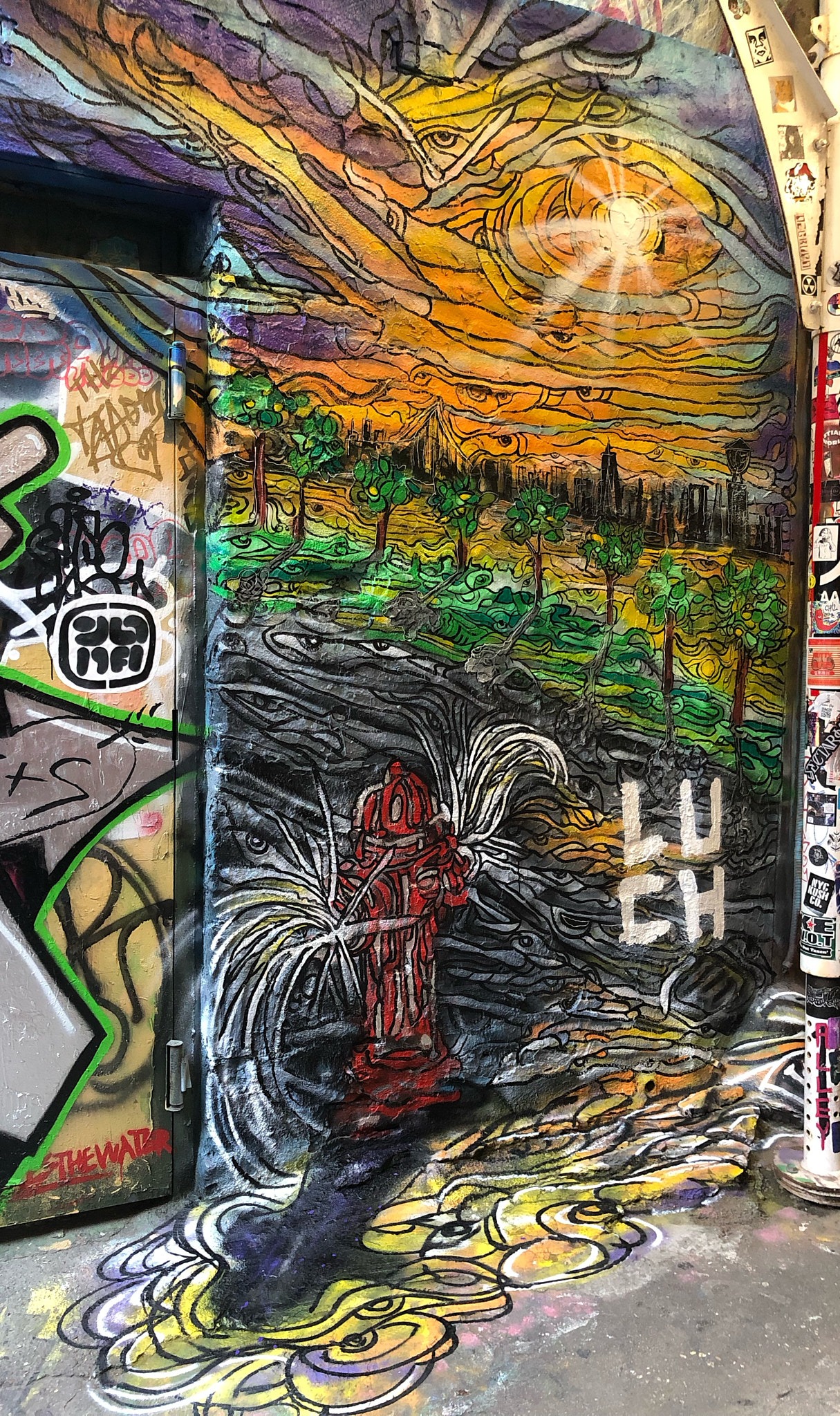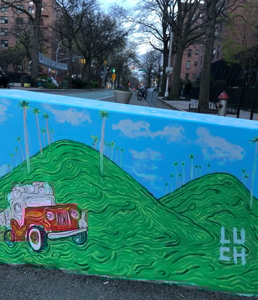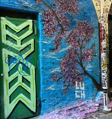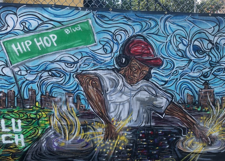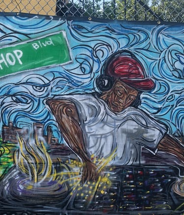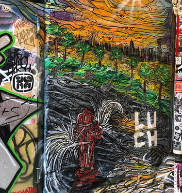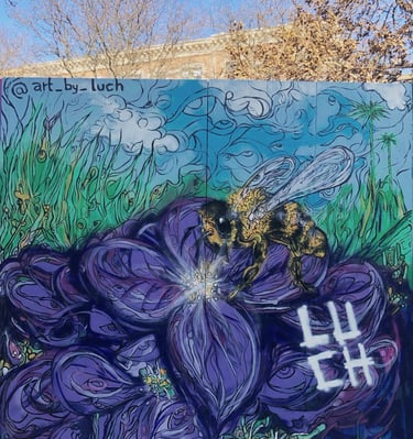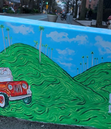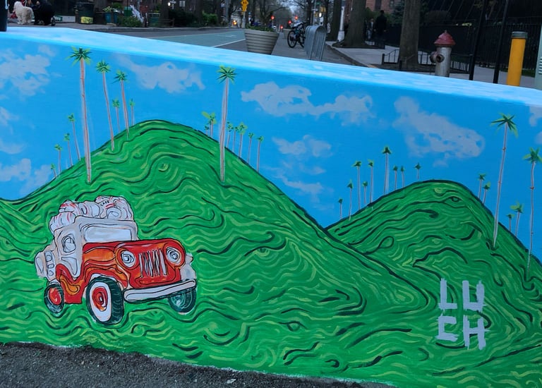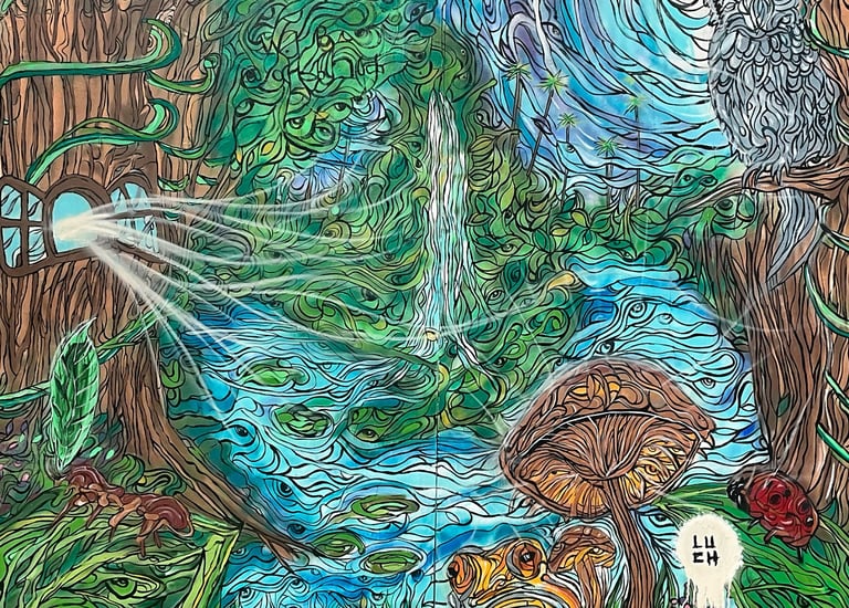 Explore vibrant murals showcasing the artist's unique creative vision.